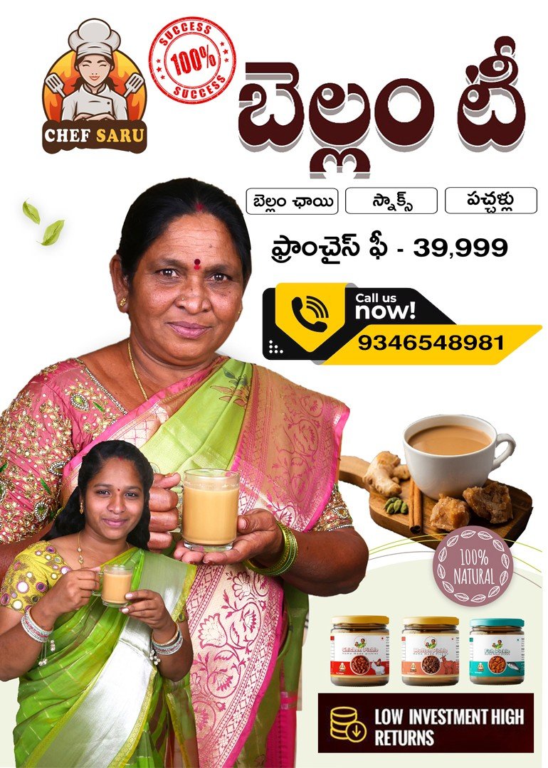 Chef Saru Foods proudly presents its all-in-one tea franchise concept, combining traditional flavors like Bellam (Jaggery) Tea, refreshing Lassis, and delightful Milkshakes under one roof. Our franchise model is designed to bring people together over a cup of tea, offering a diverse menu that caters to all taste buds. Beyond beverages, franchise owners also have the opportunity to feature our signature pickles and snacks, making it a one-stop destination for customers.